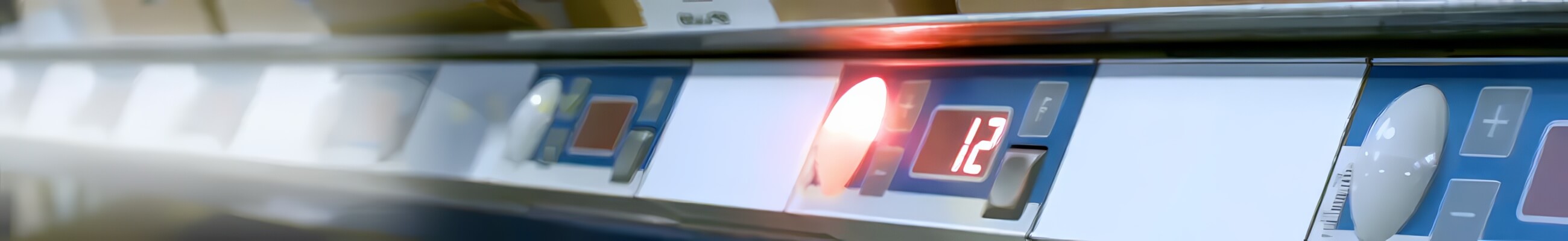 Bei unseren Fachanzeigen sind Blickfangleuchte und Quittierungstaste zwei unterschiedliche, auch räumlich voneinander getrennte Bauelemente.
