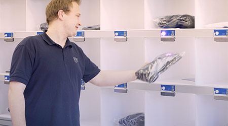 Alternativement, le signal d’intervention peut être utilisé pour la confirmation du prélèvement et ainsi remplacer l’actionnement de la touche d’acquittement, ce qui peut accélérer considérablement le picking.
